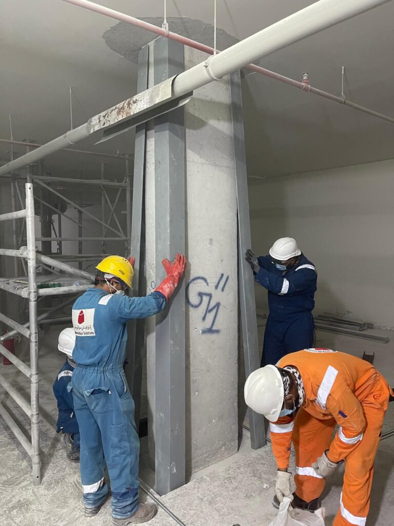 CIGRE HQ. Office Building needed strengthening. Econ was contracted to design the strengthening concept and execute it. After we got municipality approval on our design, that included two types: steel jacketing and concrete jacketing, we started the work on time, executed the columns strengthening and structural maintenance of other elements of the building, such as; water and sewage tanks, retaining walls, and cracked hollow block walls. The work has been executed to the QCS requirements under the supervision of the Consultant Arab Engineering Bureau.